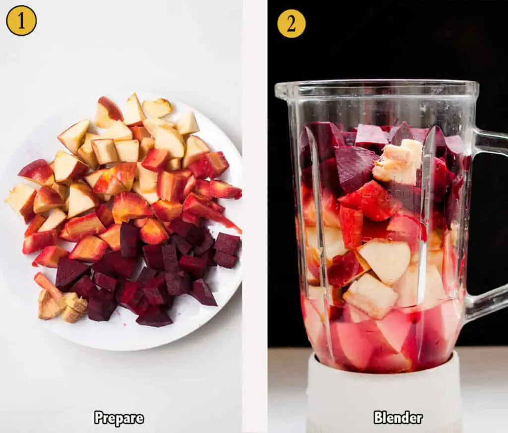 - Another big trick is to keep apples (which are the softest of three) in the base, then carrot, and finally beet that are hardest. So the apples blend quickly and form enough liquid for a beet to blend easily.