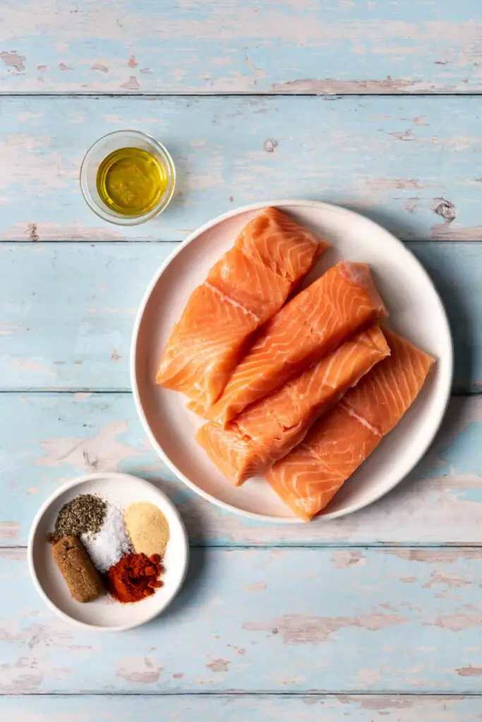 - Olive oil: This is more to help the rub stick to the salmon. If you prefer something lower calorie, you could use dijon mustard to brush the salmon instead.