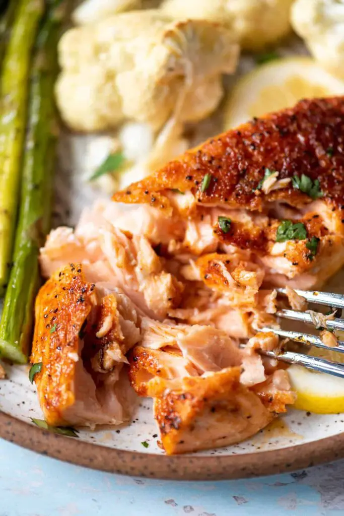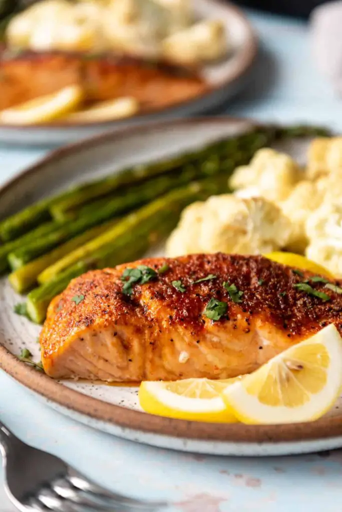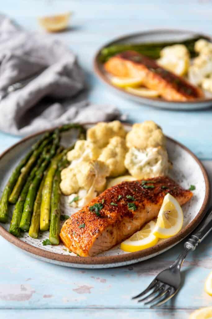 We love easy recipes with minimal effort that deliver restaurant quality results. This perfect salmon is one that makes both parents and kids happy! The juicy salmon is loaded with healthy fatty acids that we all need, and everybody loves having lemon wedges to squirt over their salmon.