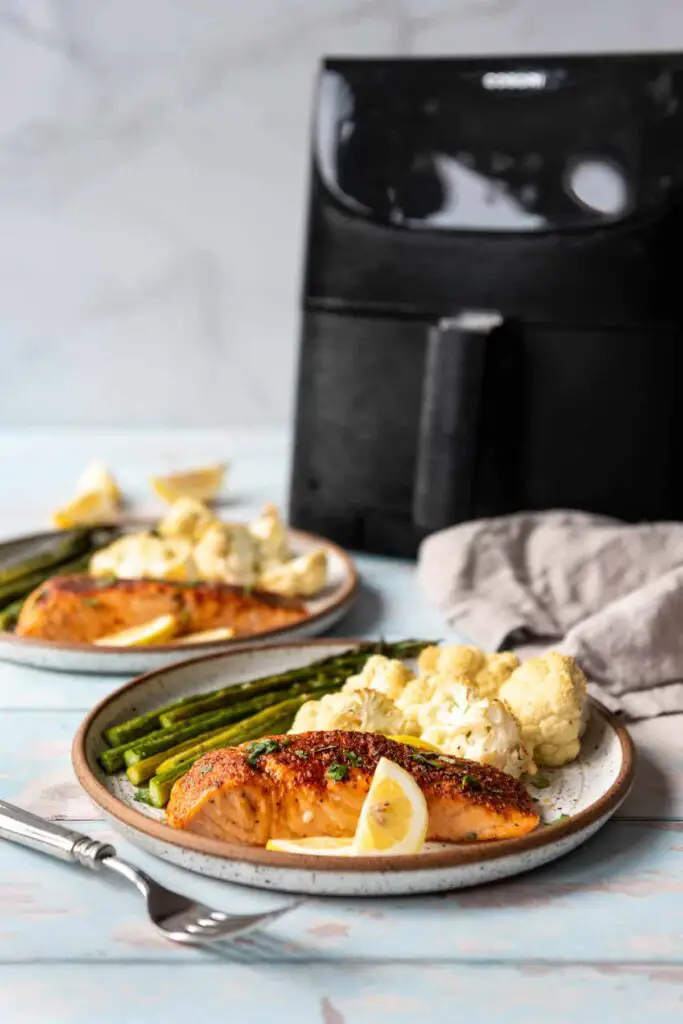 - If you have room in your air fryer, you can cook the salmon and asparagus at the same time. Otherwise, I recommend cooking the salmon first, then doing the asparagus while the salmon rests.