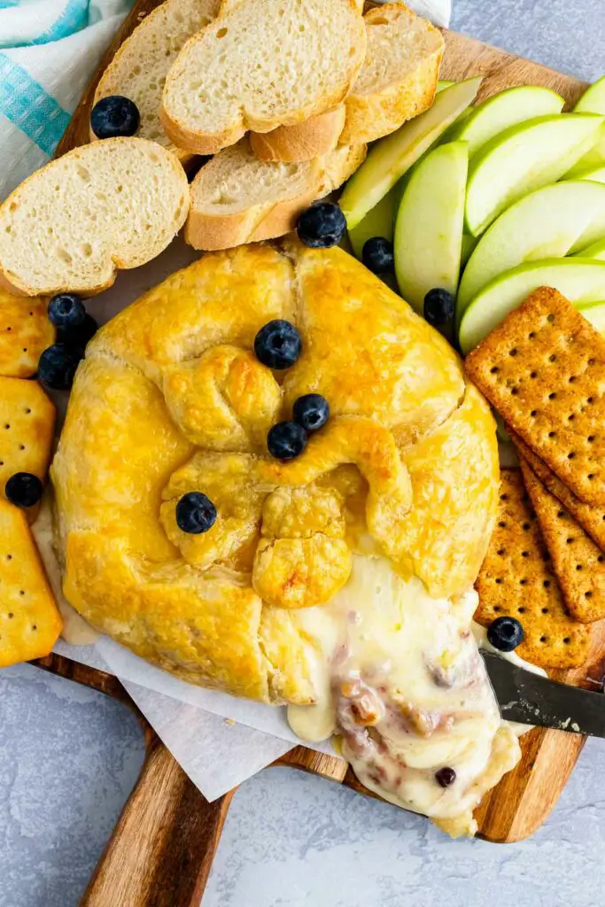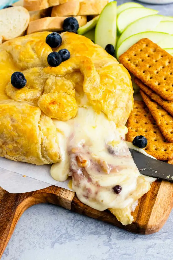 - Be very careful when wrapping the puff pastry around the brie, make sure that there are no open seams, otherwise the brie may start to pour out from the pastry while it’s cooking.