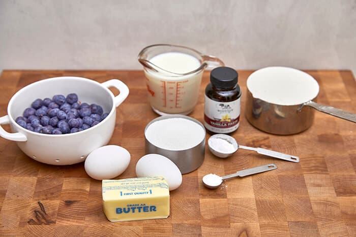 - 2– 3 cups blueberries (if you’re using frozen, thaw and strain) See Note about more flour and jammy bottom*