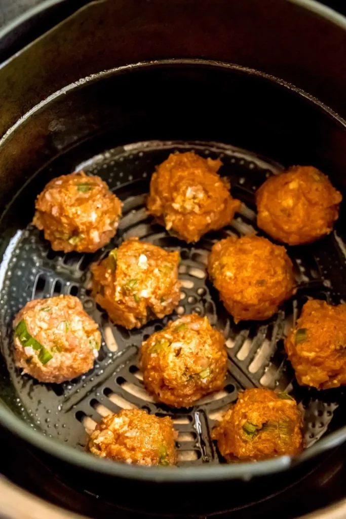 - Don’t overcrowd the air fryer basket. This will affect cook time and the outside will not be as crisp. Remember, the point of an air fryer is for the air to circulate and fry the food. If the air cannot move it will actually steam the meatballs and they will have a very different texture.
