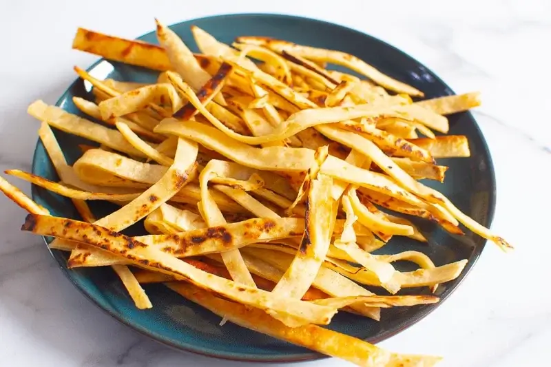 If you have time, I highly recommend to make your own tortillas strips at home because it’s so easy. They come out more authentic, flavorful and healthier than store-bought tortilla strips.