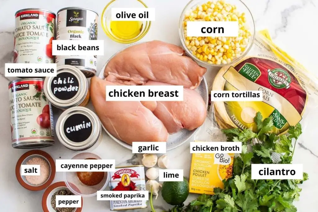 To make this version of chicken tortilla soup recipe, you will need very simple ingredients. The list might seem long but many are fridge and pantry staples.