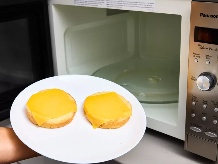 Working with 2 buns at a time, place bottom buns on a large microwavable plate; top each bun with 1 cheese slice. Lightly sprinkle a small paper towel with water, and place in small microwavable bowl with bottom buns. Cover plate with an inverted microwavable glass bowl. Microwave on HIGH until buns are steamy and cheese is melted, 15 to 20 seconds. Carefully remove buns from plate; place top buns on the same plate and microwave on HIGH for 10 to 15 seconds.