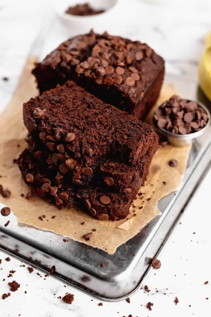 - I used milk chocolate chips which tasted delicious in combination with the dark banana bread. I highly recommend using good-quality ones so they don’t melt on top quickly. Semi-sweet and dark chips are fine.