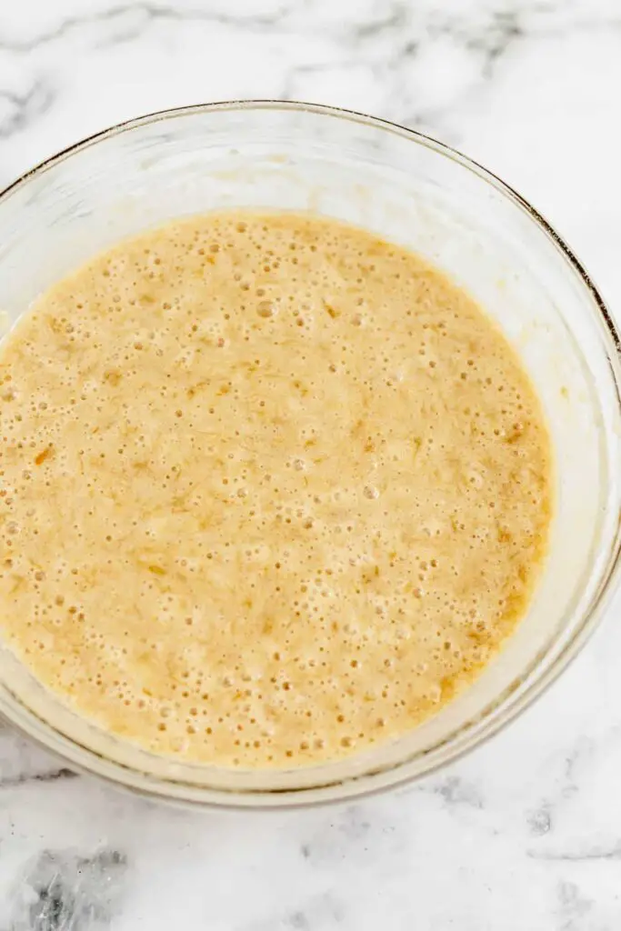 - Mash the bananas in a large mixing bowl until smooth. A few chunks here and it is fine.