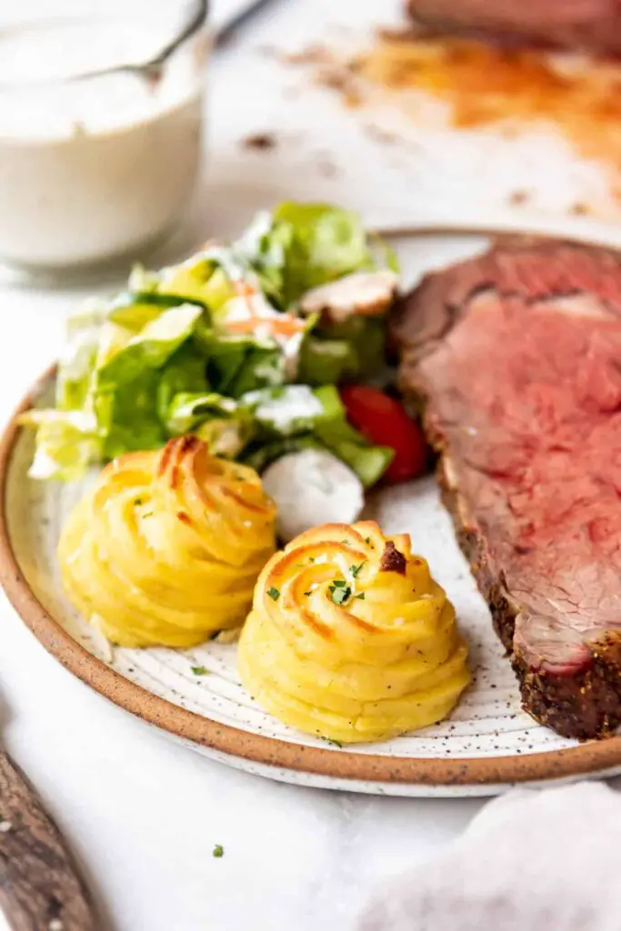 Duchess potatoes would be perfect served with Christmas dinner parties, Easter dinner, or even just a nice Sunday dinner with roast beef as a way to change up your potato game.