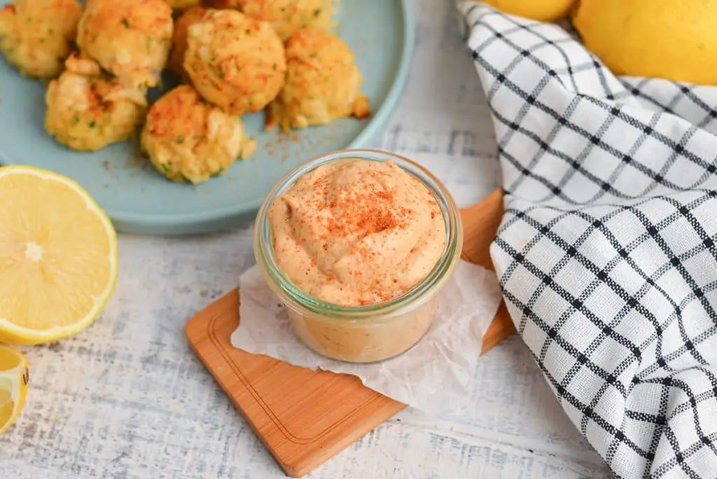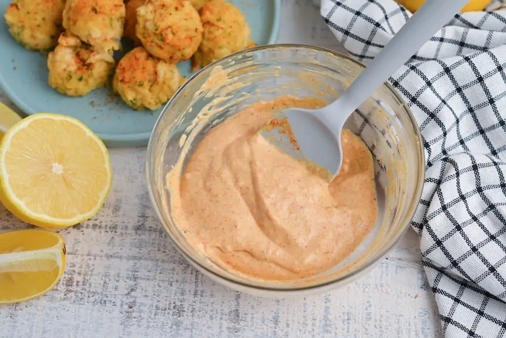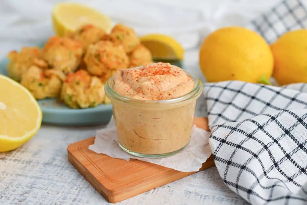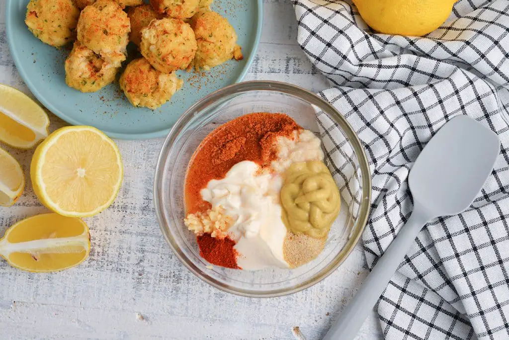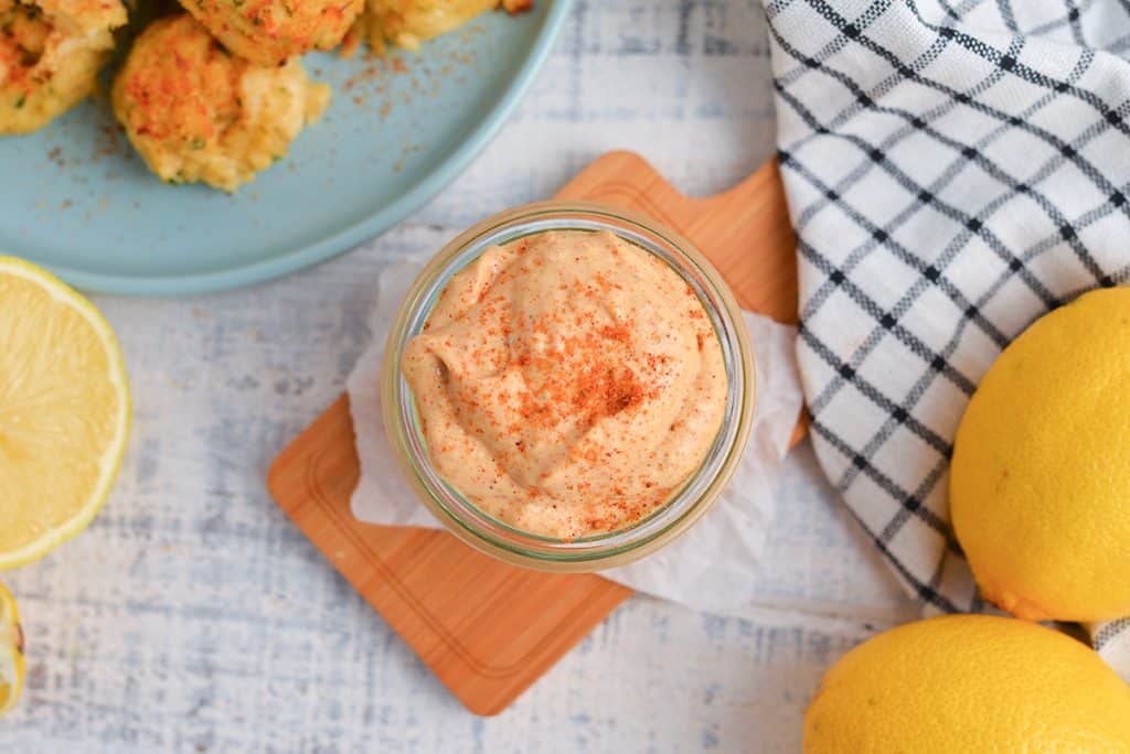 - Combine the mayo, Dijon, garlic, lemon juice, horseradish, Old Bay, Worcestershire, onion powder and paprika in a bowl, whisking until combined.