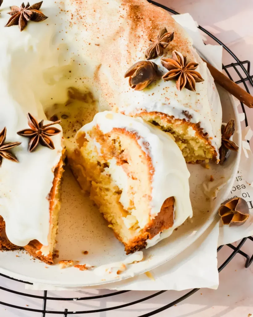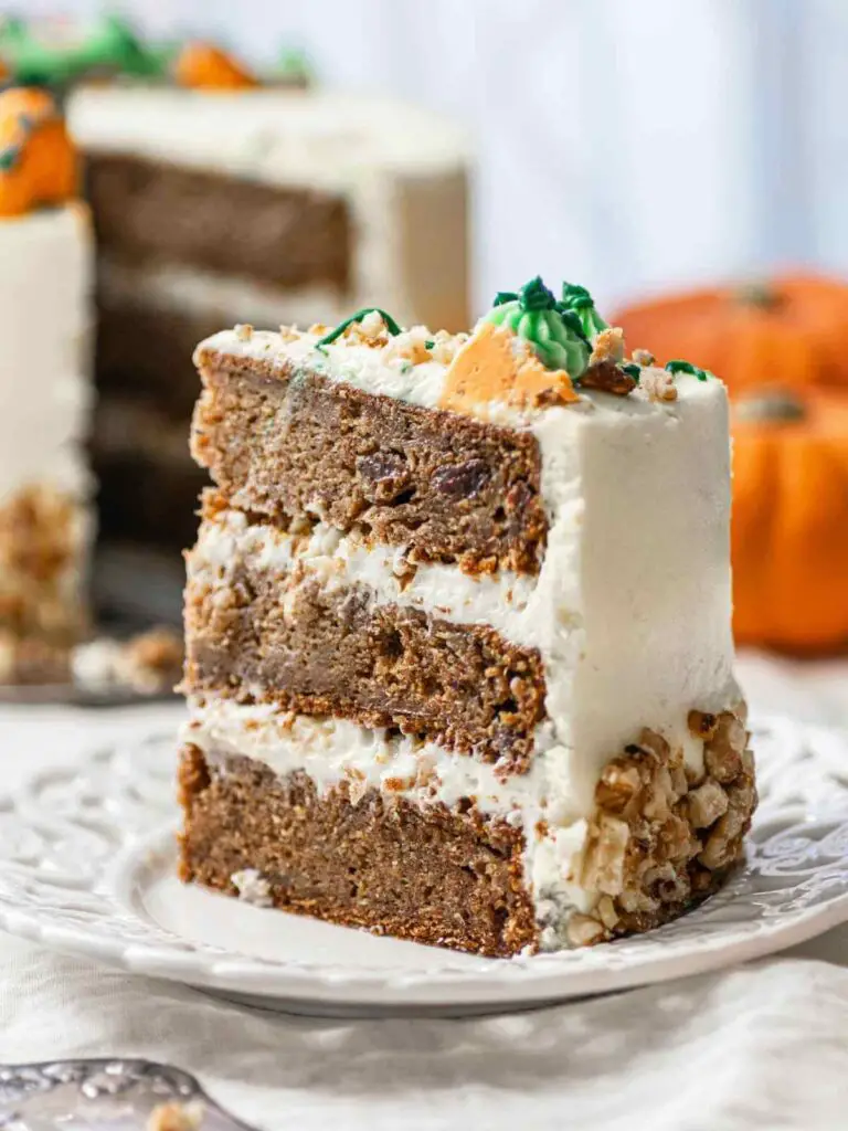 The cream cheese frosting perfectly complements the cake, adding a creamy, tangy sweetness that enhances the seasonal flavors. This combination makes for an irresistible fall dessert.