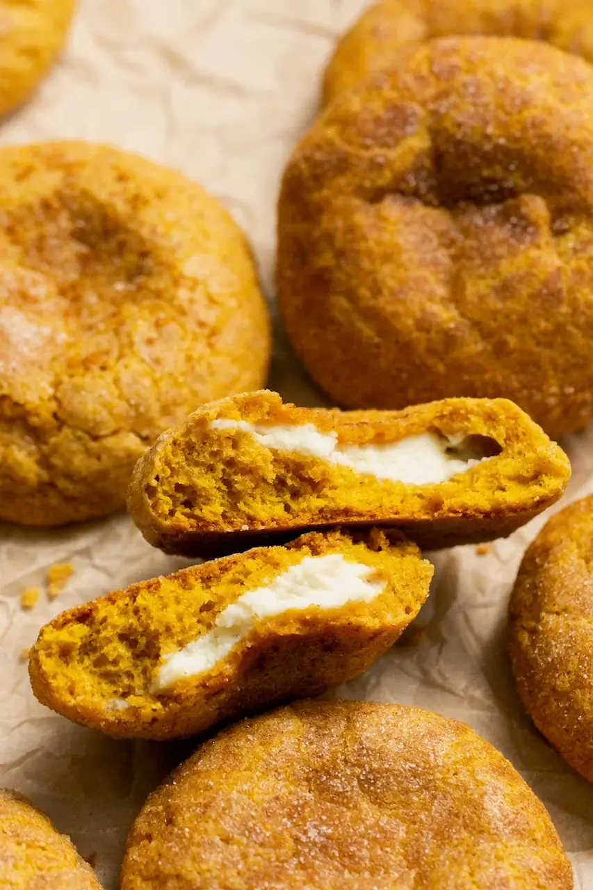 These soft and chewy pumpkin cookies feature a creamy cheesecake center, making them the ultimate fall dessert. Perfectly timed for pumpkin season, these stuffed cookies will become your new favorite treat.