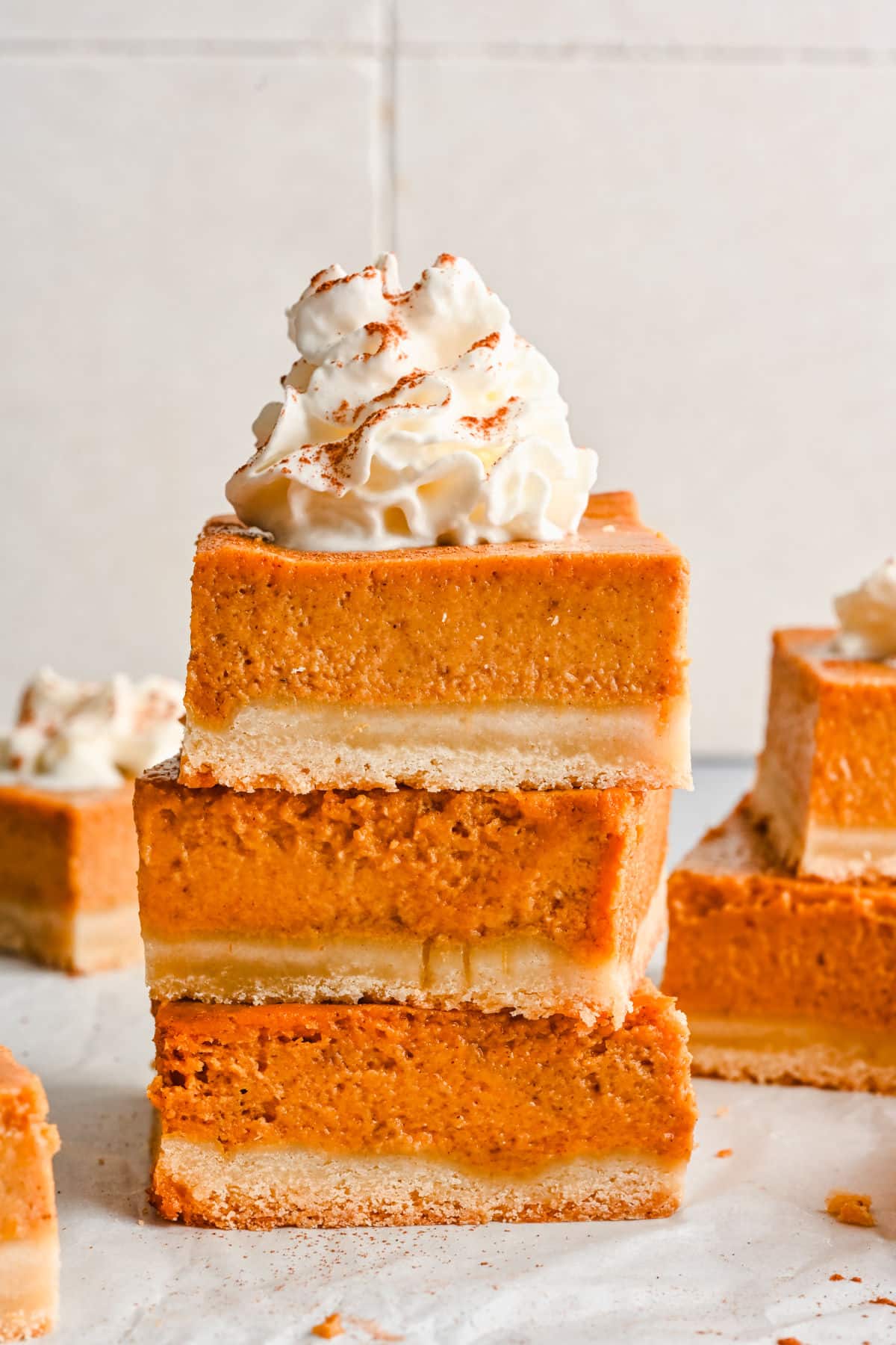 These Pumpkin Pie Bars are a delightful twist on the classic dessert, featuring a spiced pumpkin filling atop a homemade pie crust. Perfect for Thanksgiving, these bars are easy to prepare and offer a rich, creamy pumpkin flavor in a convenient bar form.