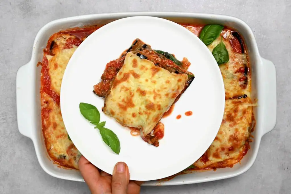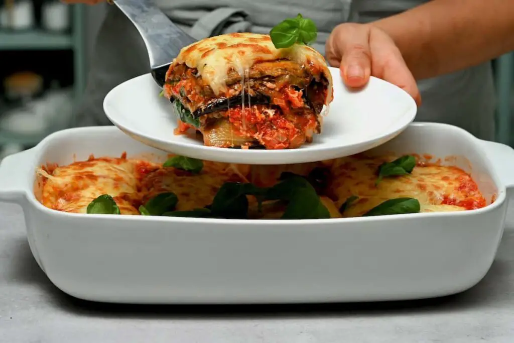Rest: Remove the baked eggplant parmesan from the oven. Allow to rest for 10 minutes before slicing and serving hot.