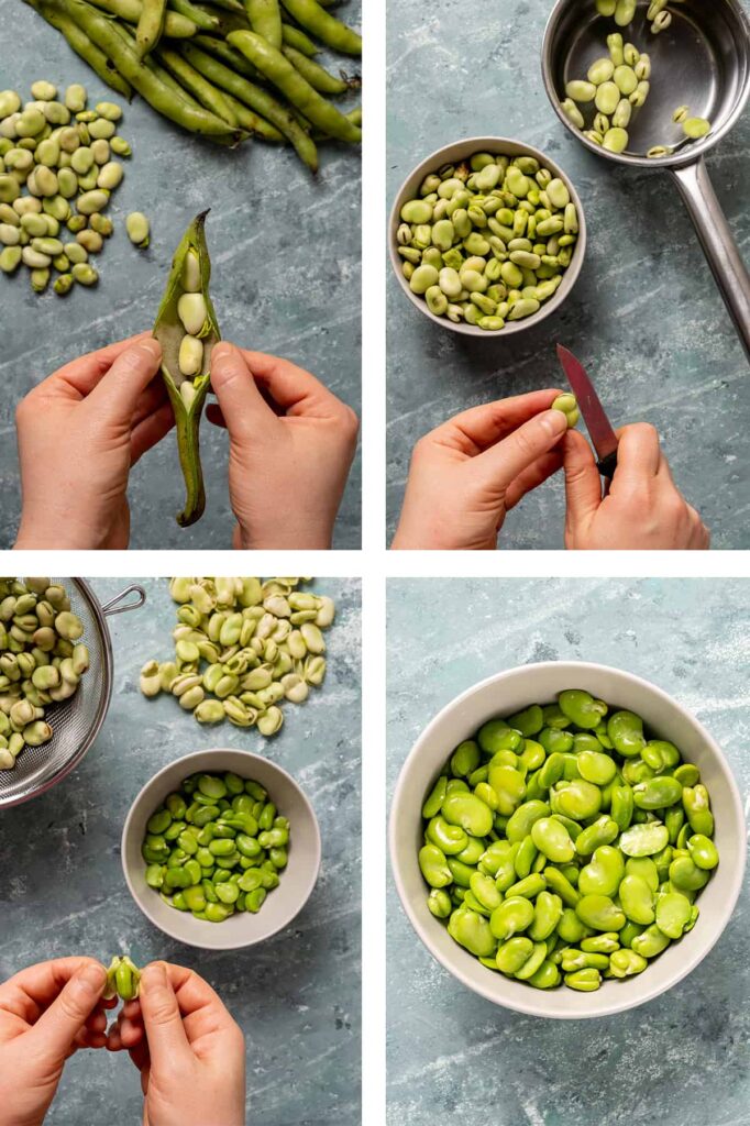 Tip: If you buy frozen fava beans from the store, they are probably peeled and you won’t need any of those steps above.
