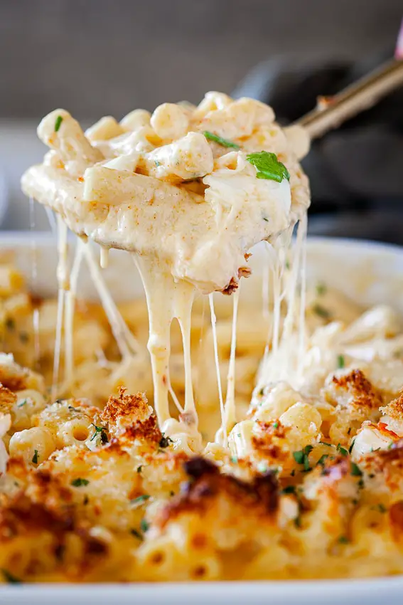 - Combine the cooked macaroni with the cheese sauce and stir in the lobster meat.