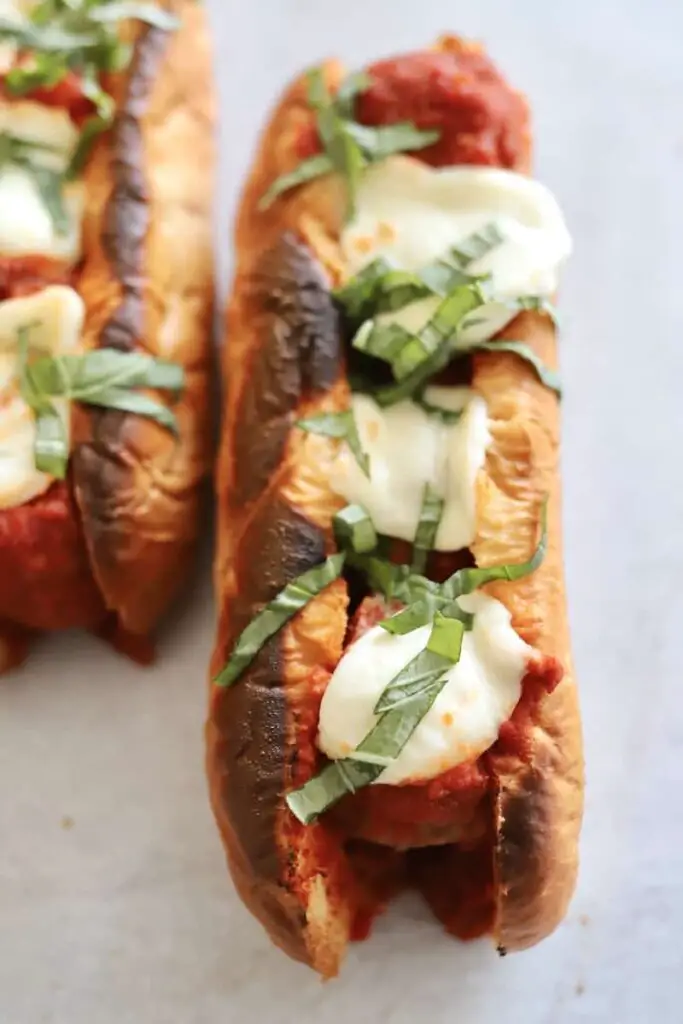 - A good quality mozzarella will make all the difference with this sandwich. We prefer fresh mozzarella to low moisture mozzarella, and if you’re feeling fancy you can top this meatball sub with burrata for an extra creamy finish.