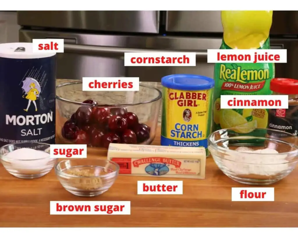 3. Cornstarch: This ingredient is used in the shortbread crust. It provides structure to the shortbread while keeping the cookie crust soft and light. Cornstarch is also used to thicken the cherry pie filling.