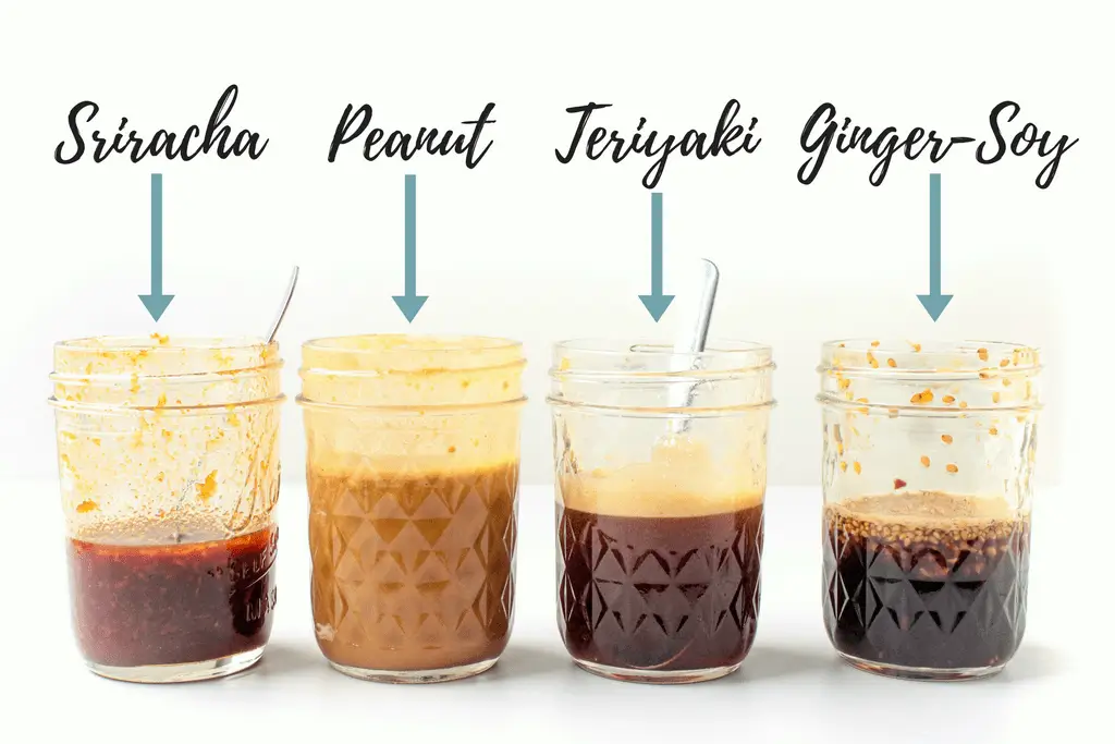 1 teaspoon sriracha (or more if you like it extra spicy!) + 2 tablespoons low-sodium soy sauce + 2 tablespoons rice vinegar + 1 tablespoon honey + 1 clove crushed/grated garlic + 1 teaspoon minced/grated ginger