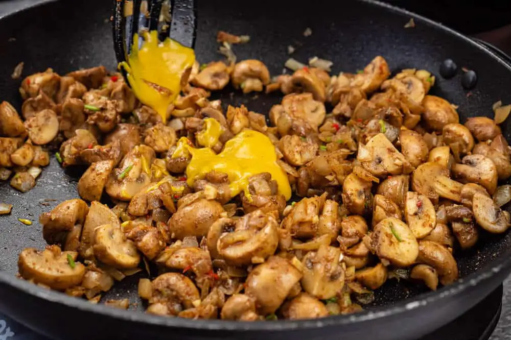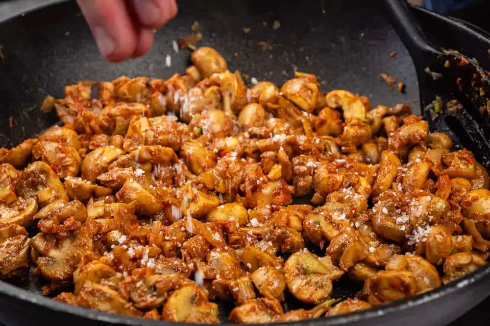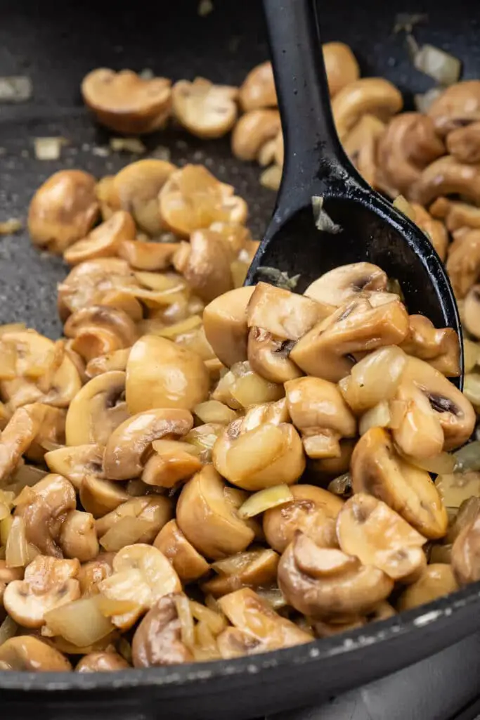 4. Next, add the mushrooms. Cook until onions and mushrooms have softened, stirring occasionally. (about 15 minutes)