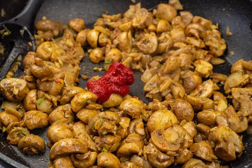 Tomato paste or puree helps to thicken the mushroom bhaji sauce and add a rich tomato flavour.