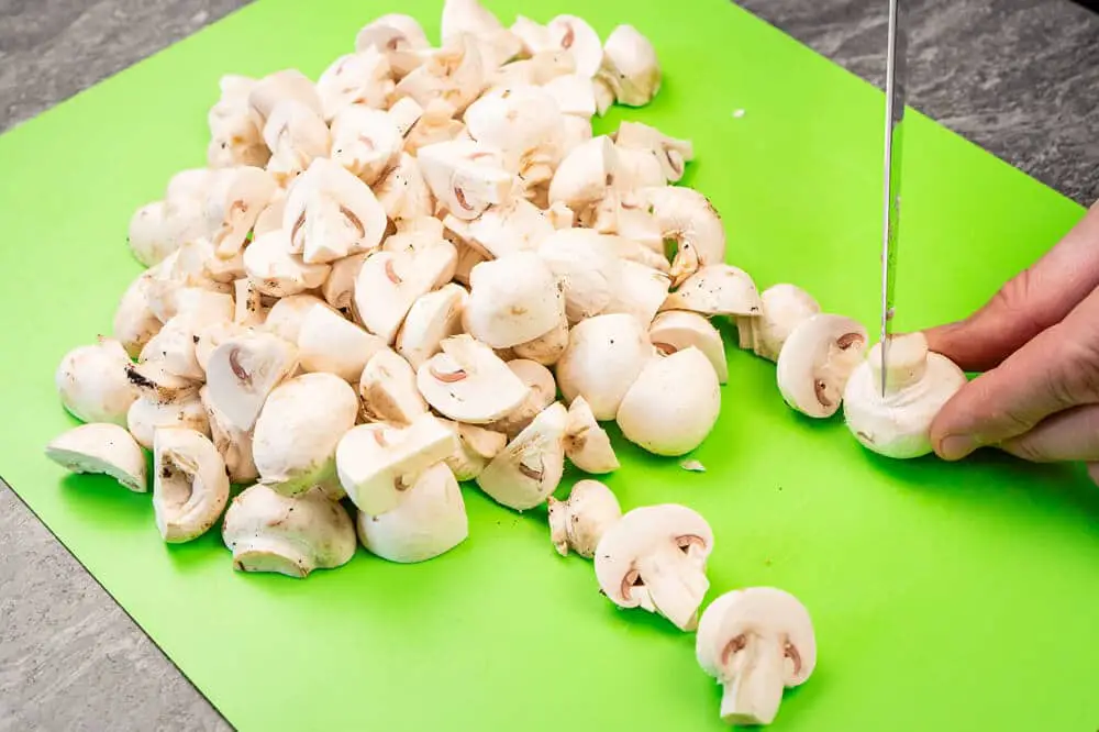 - Chop mushrooms into quarters.