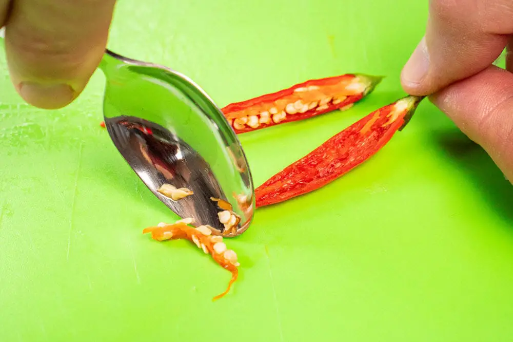 Deseed it to keep the spice levels down, or keep them in if you like the extra spicy kick.