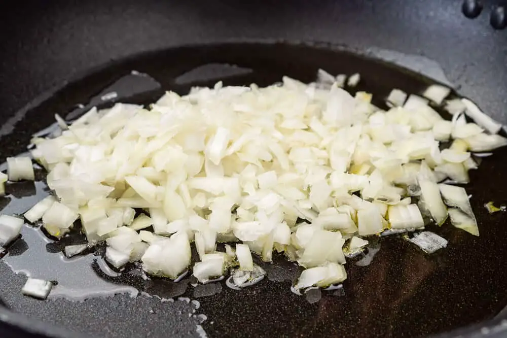 3. Heat the oil in a frying pan over medium-low heat. Add onions.