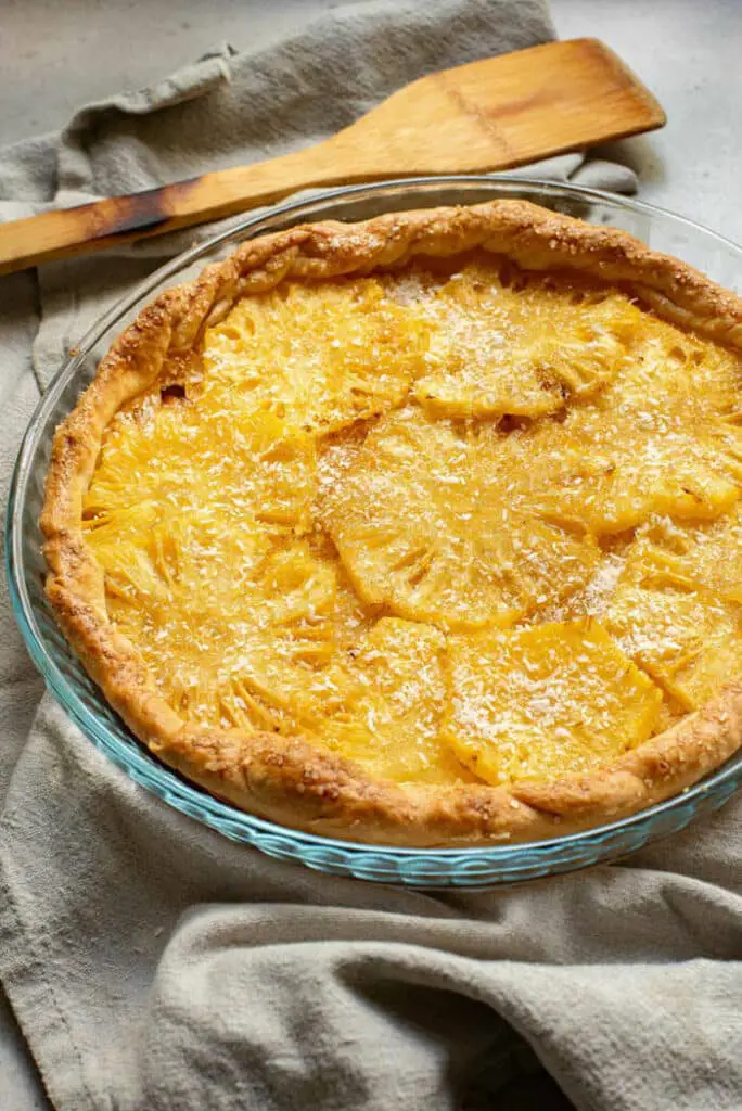 - Beautiful presentation: Without a top crust, you’re able to see the beautiful, golden pineapple slices.