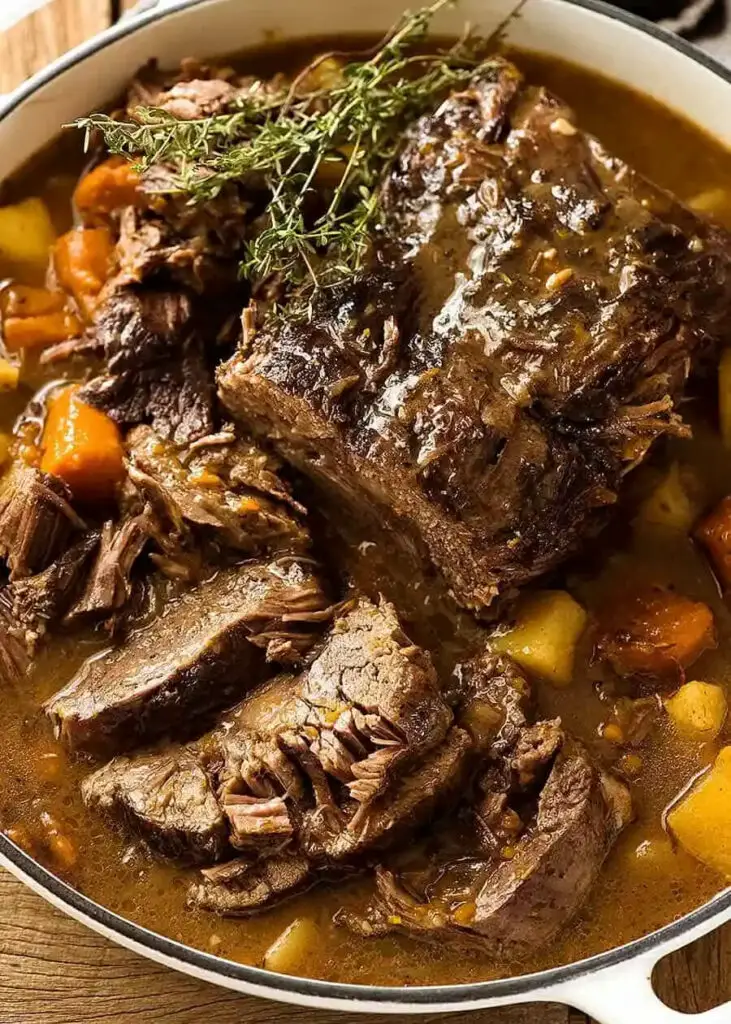 If you love meltingly tender, slow cooked roast beef and deeply flavoured gravy, this pot roast recipe is for you!