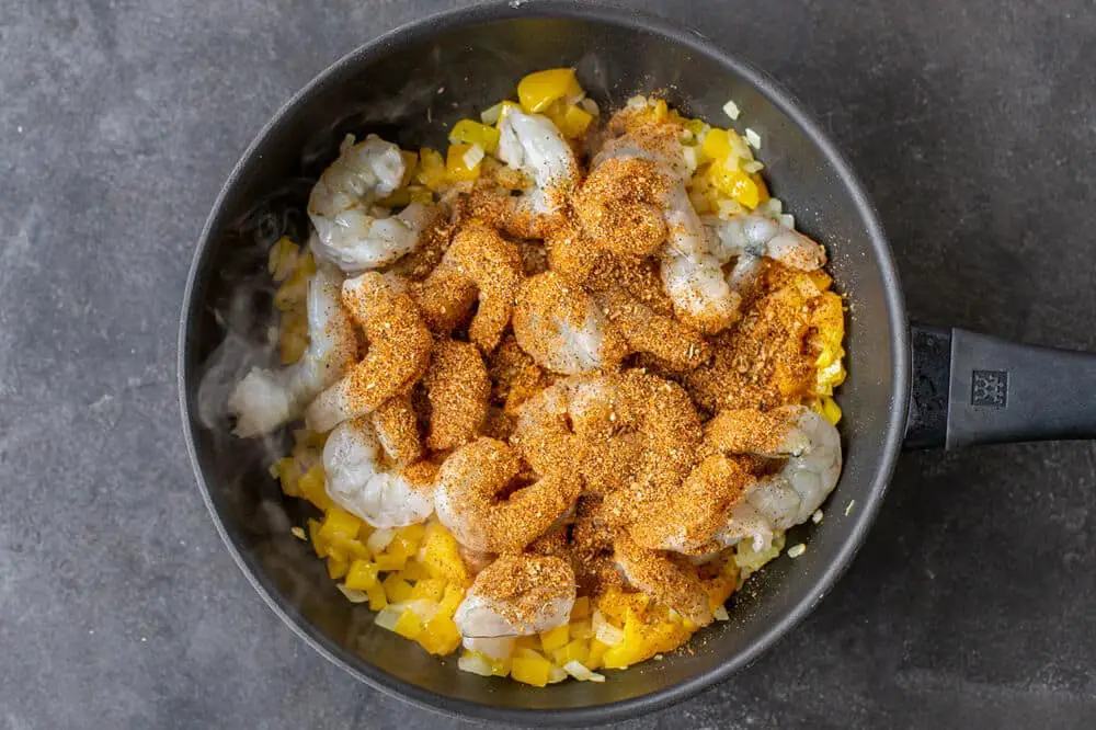 2. Add the shrimp and taco seasoning. Cook until the shrimp begins to turn pink. Transfer everything to a bowl and set it aside.