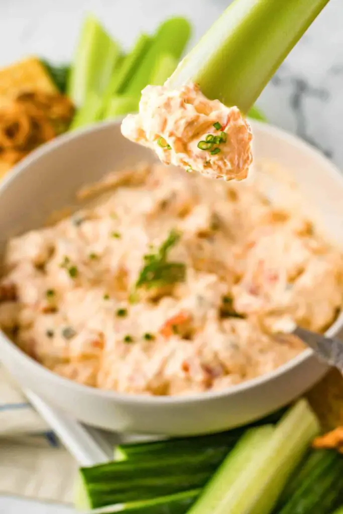 - Chives – Finely chopped fresh chives will garnish the dip and add a fresh flavor. Green onions would be a good substitute but would taste a bit different.