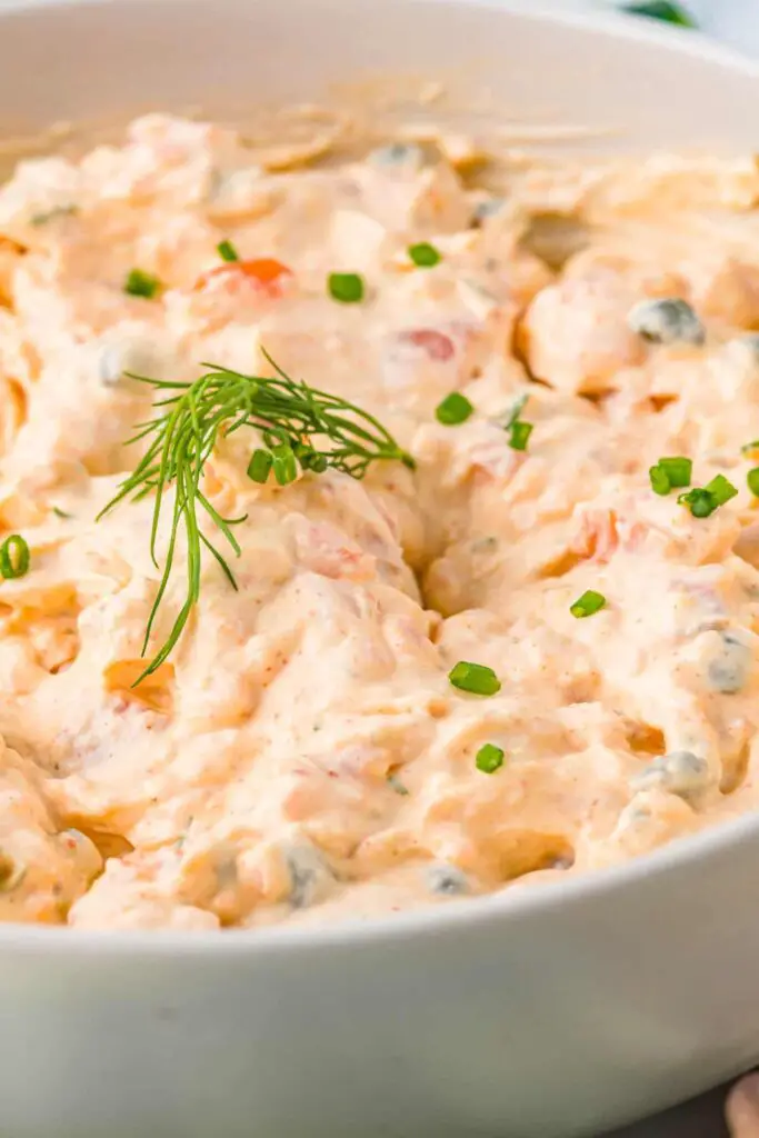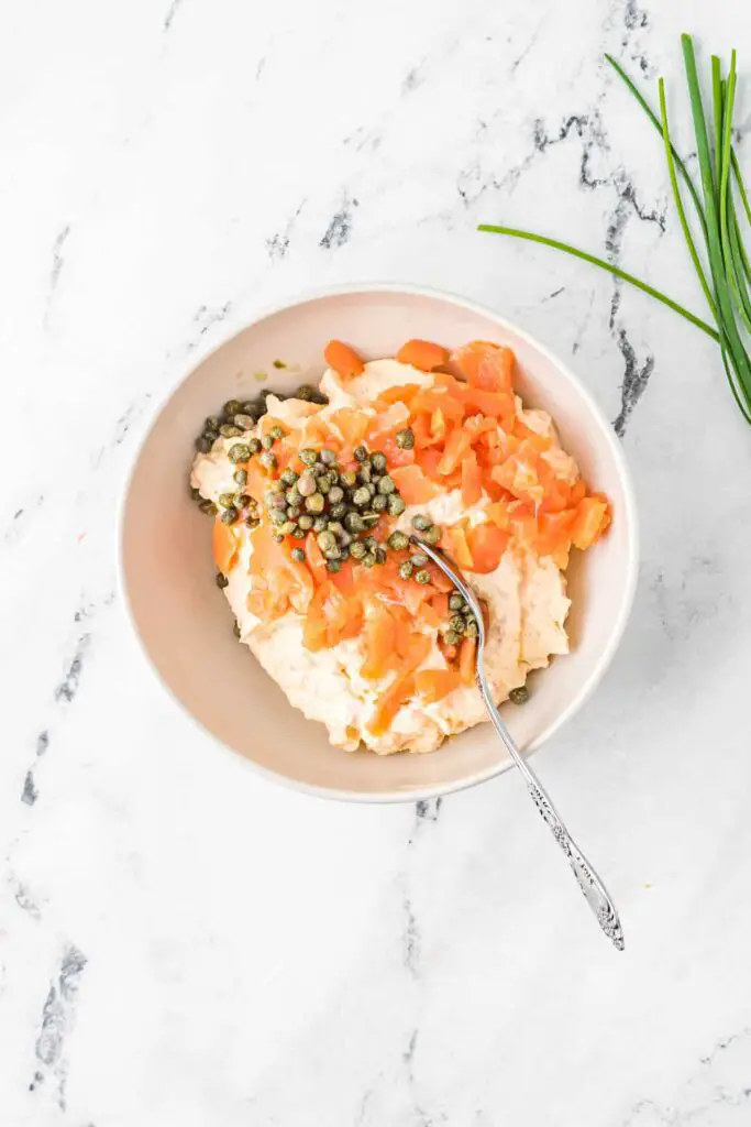 - Capers – Adds a burst of flavor to the dip and compliments salmon well.