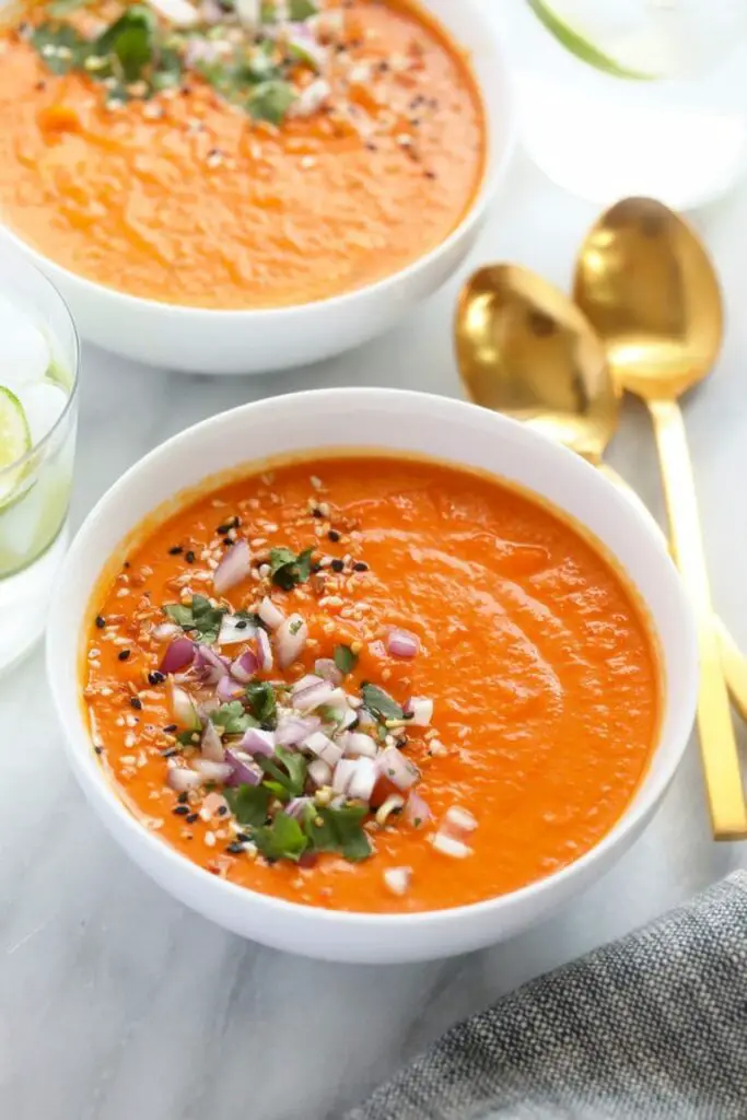 It’s a quick recipe, too – just 30 minutes from start to finish! Simply cook all of the ingredients for this soup in your Instant Pot on high pressure for 3 minutes. Quick release and use an immersion blender to purée.