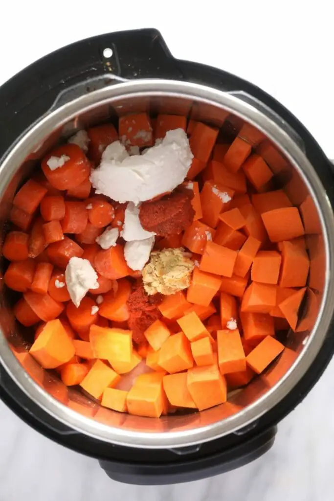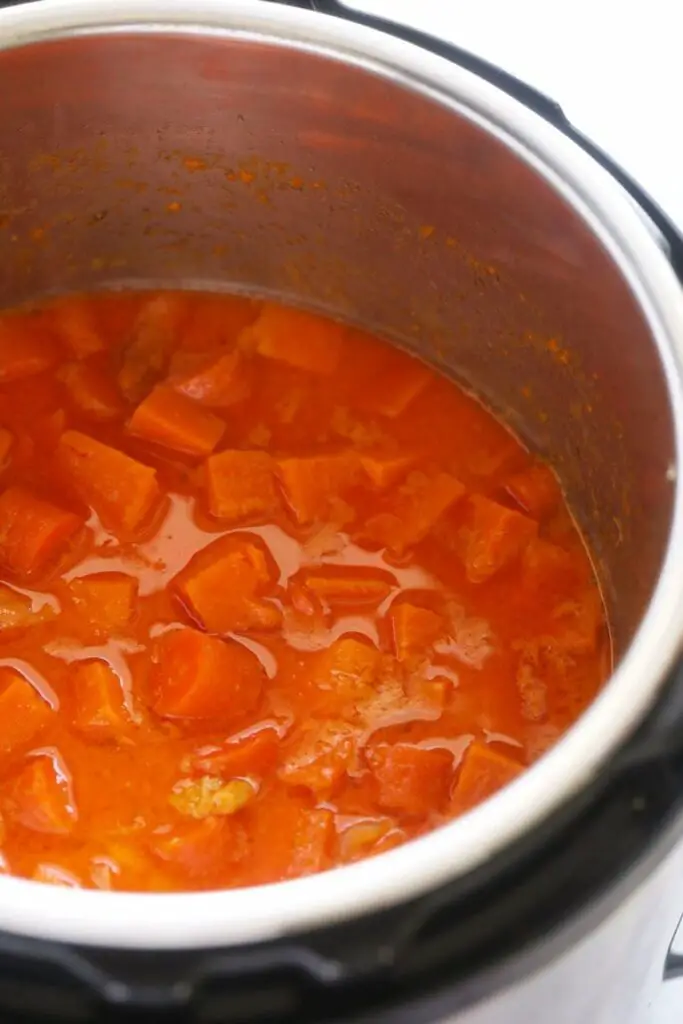 - Open Instant Pot and mix. Use a fork to test both the sweet potato and carrot chunks. You want to make sure they are cooked all the way through. The sweet potato cooks faster than carrots, so those will likely be more cooked than the carrots. If things aren’t cooked enough, simply cook for 1-2 more minutes on high.
