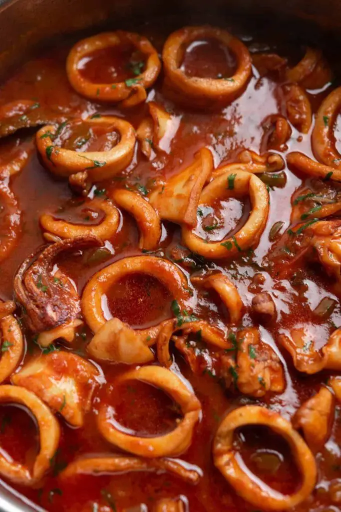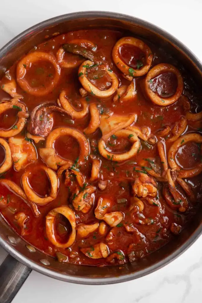 You can use either squid or calamari. It won’t make any difference. However, this is a great recipe for squid. Because it’s easy to make it tender when slowly cooked in the sauce (it can be tougher cooked in other ways).